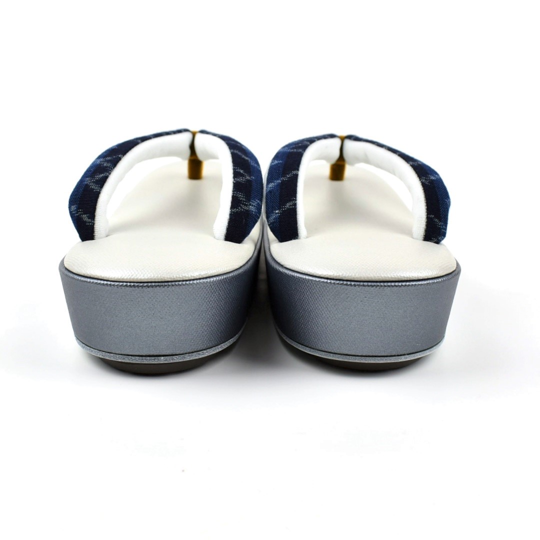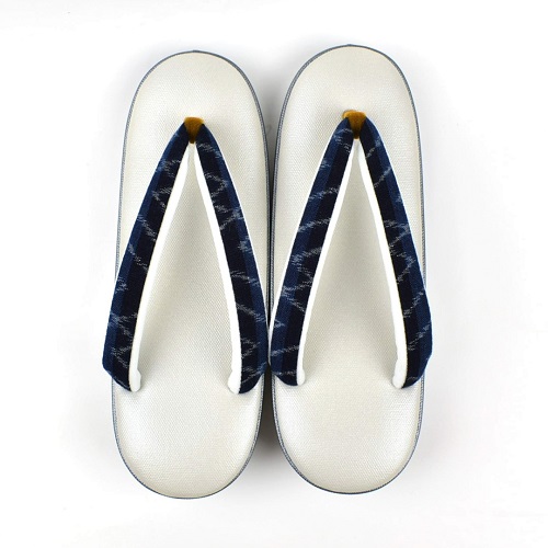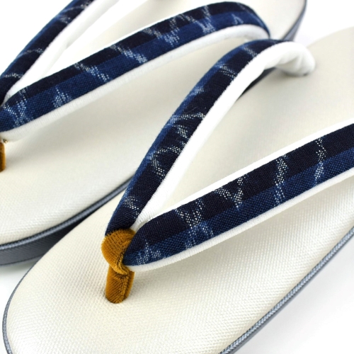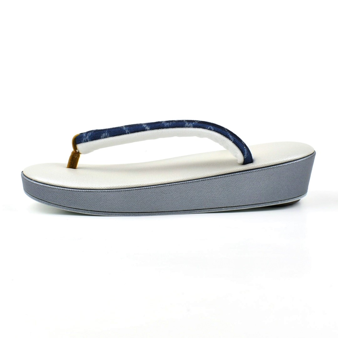 弓浜絣 鼻緒 草履 帆布 白 グレー