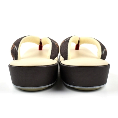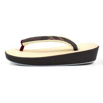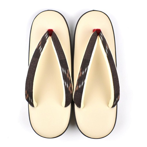 久米島紬 鼻緒 草履 帆布 生成り 焦げ茶