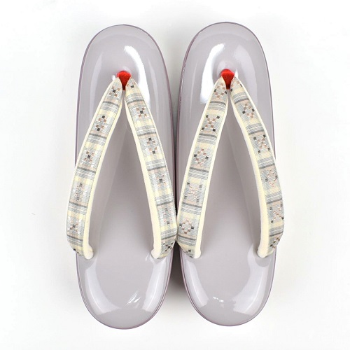 琉球紅型 鼻緒 草履 三枚芯 エナメル グレー やふそ紅型工房