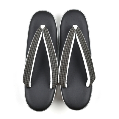 黄八丈 鼻緒 草履 三枚芯 帆布 黒