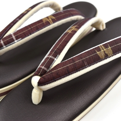 琉球絣 鼻緒 草履 三枚芯 帆布 茶色