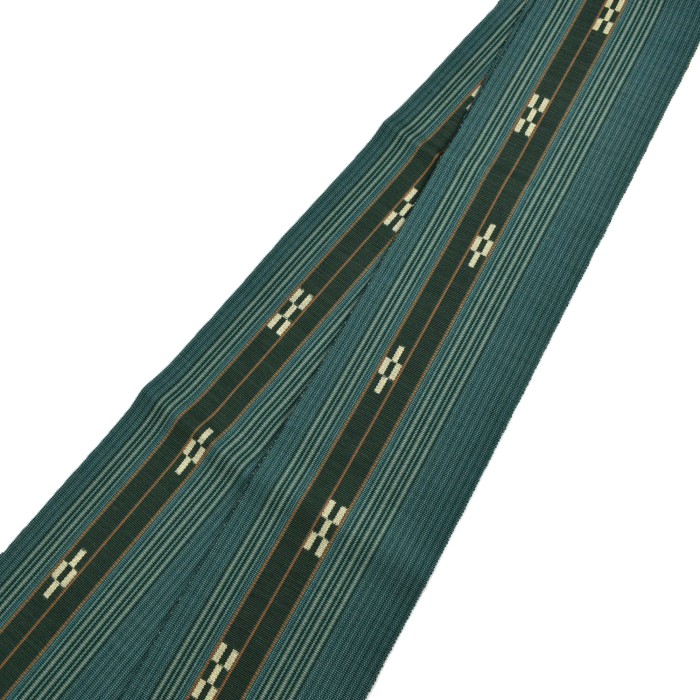 八重山ミンサー 半幅帯 2本絣・深青緑|みんさー工芸館