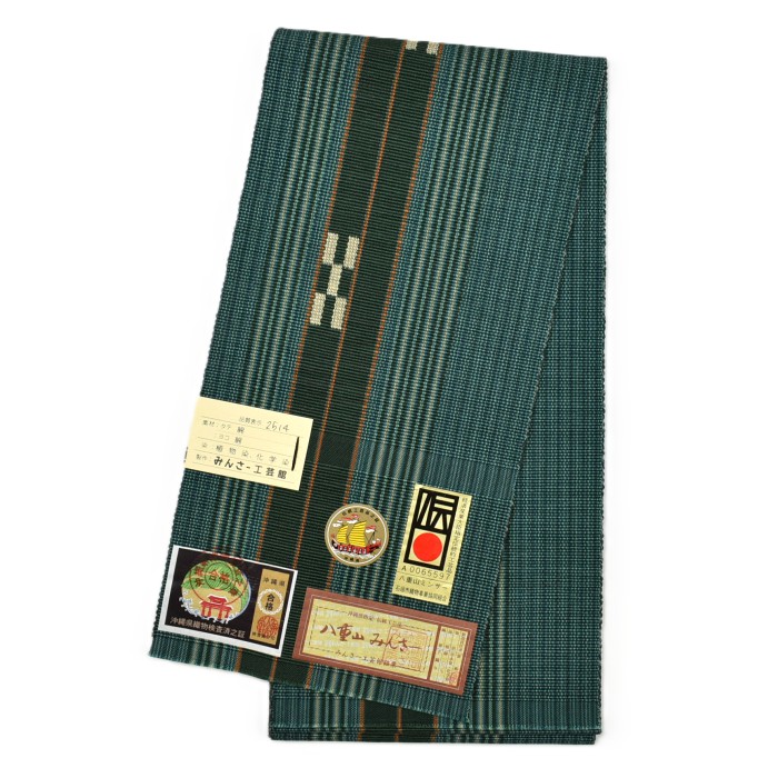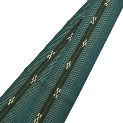八重山ミンサー 半幅帯 緑 藍 草木染 |石垣市織物事業協同組合