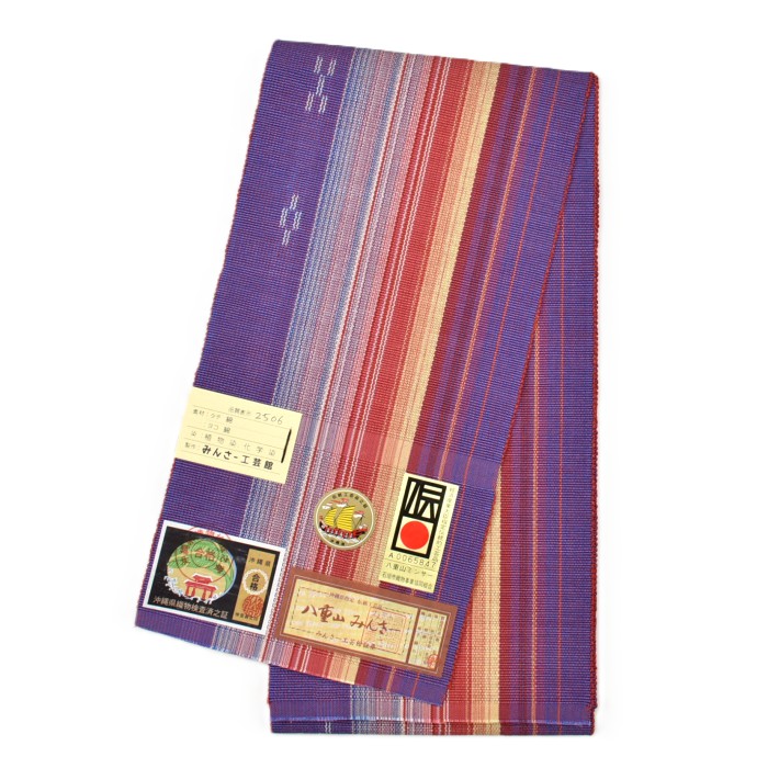 首里花織 首里織 半幅帯 藍 紫 緑 市松|那覇伝統織物事業協同組合