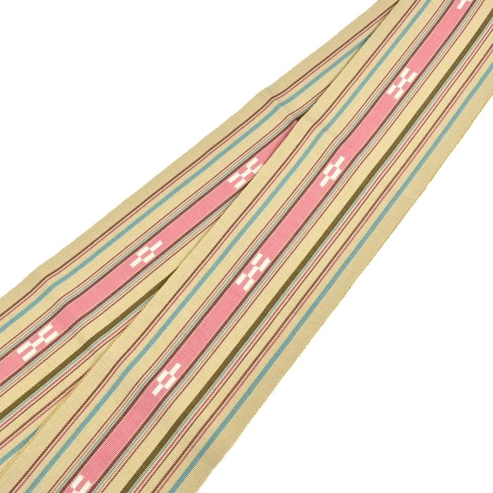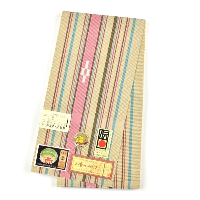 八重山ミンサー 半幅帯 ベージュヤタラ縞|みんさー工芸館