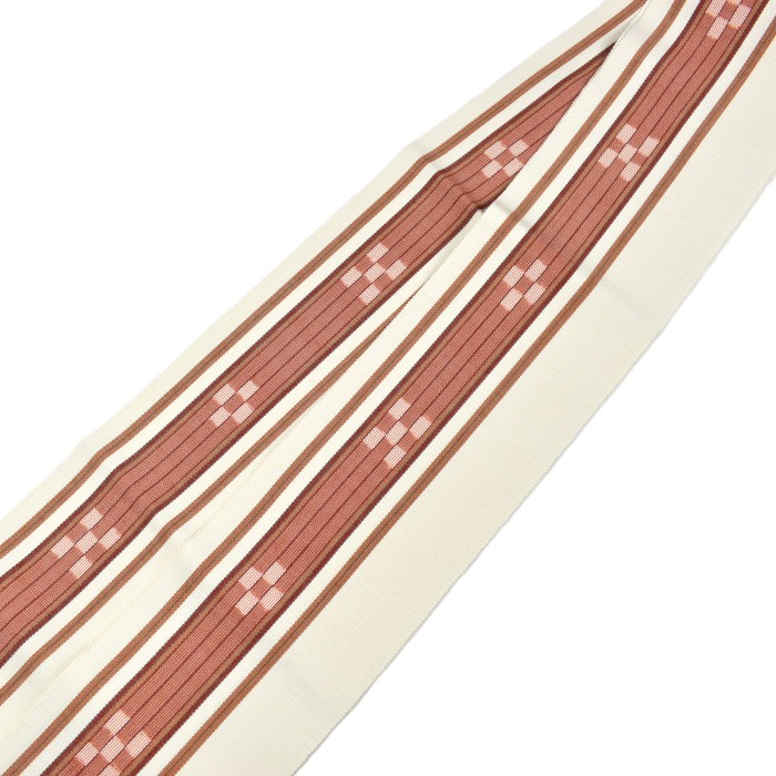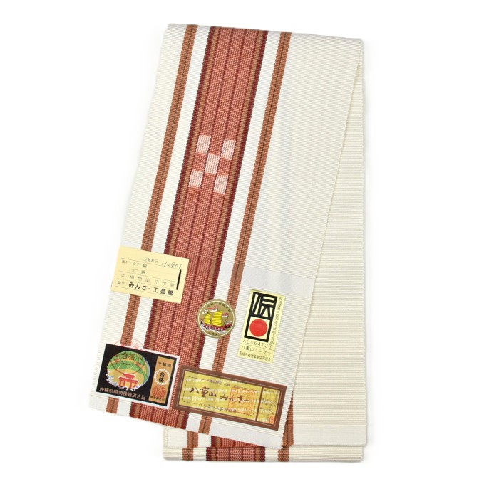 八重山ミンサー 半幅帯 白地の薄紅|みんさー工芸館