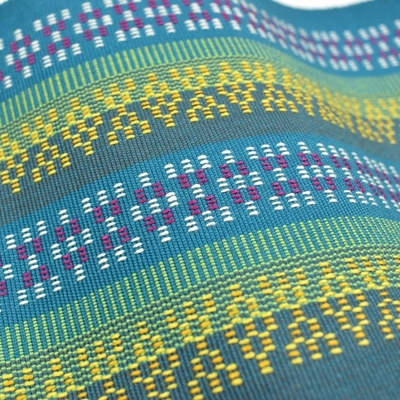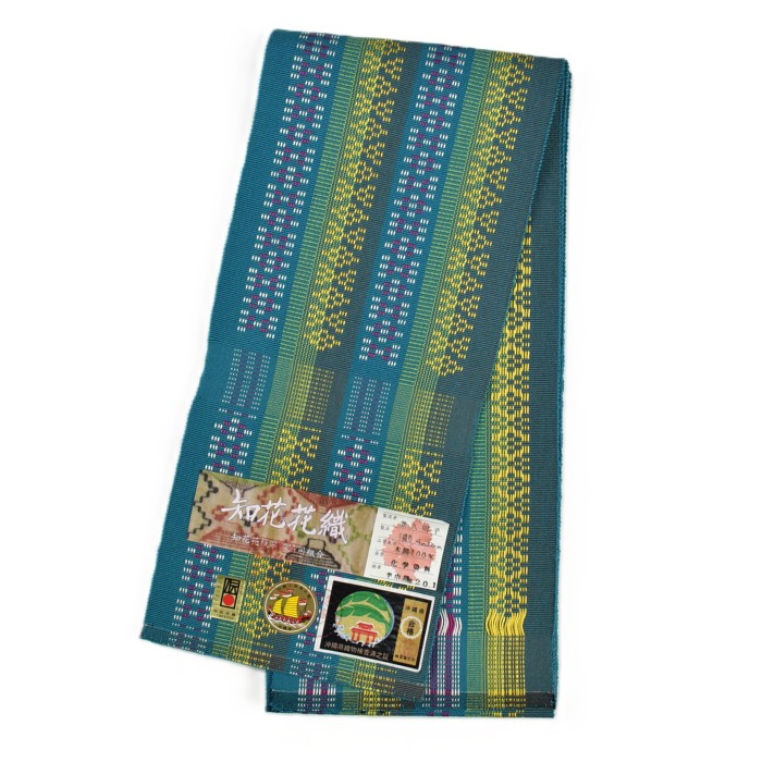 知花花織 半幅帯 藍 緑 黄色|知花花織事業協同組合