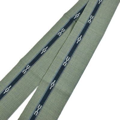 八重山ミンサー 半幅帯 緑 藍 草木染 |石垣市織物事業協同組合
