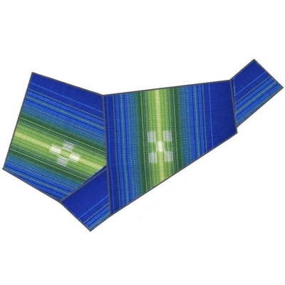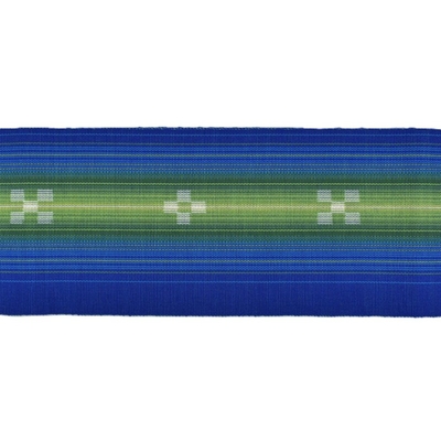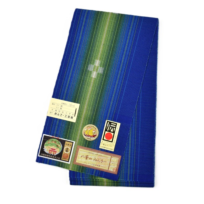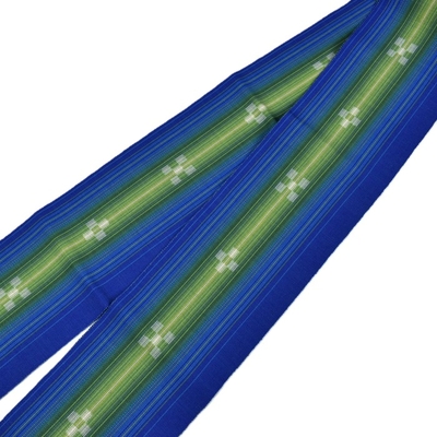 八重山ミンサー 半幅帯 藍 緑 グラデーション 草木染|石垣市織物事業協同組合