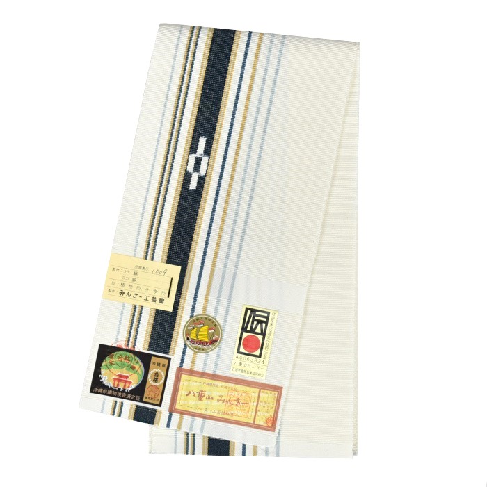 八重山ミンサー ヤタラ白紺 半幅帯 |みんさー工芸館