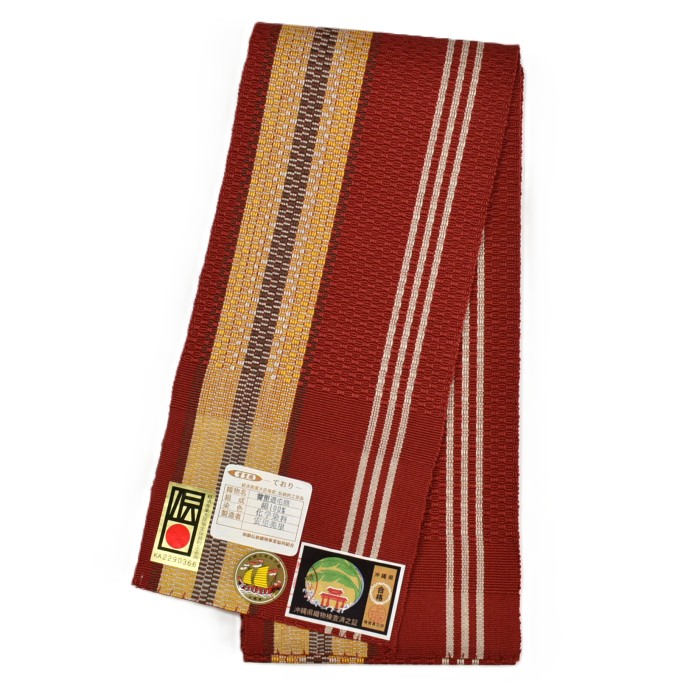 首里道屯織 総道屯 首里織 ロートン 半幅帯 赤|那覇伝統織物事業協同組合