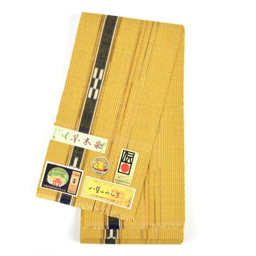 八重山ミンサー 半幅帯 黄 草木染|石垣市織物事業協同組合