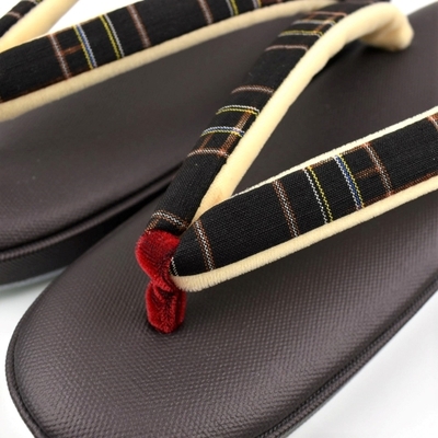 久米島紬 鼻緒 草履 帆布 焦げ茶