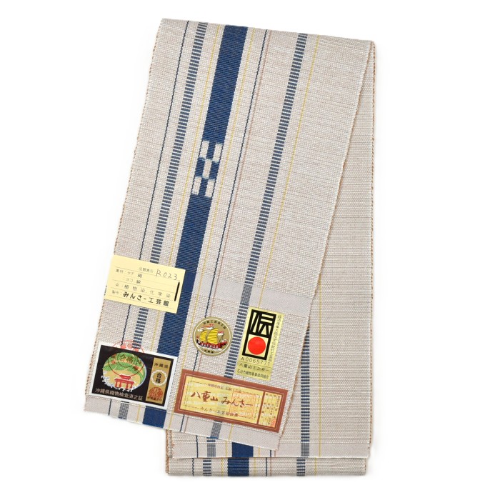 八重山ミンサー 半幅帯 白伽羅色 |みんさー工芸館