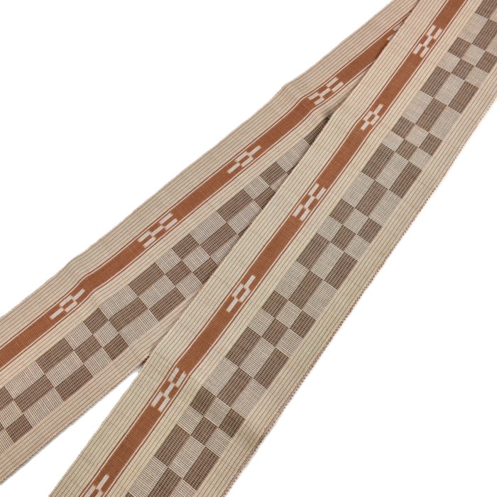 八重山ミンサー 半幅帯 茶色 市松 草木染|石垣市織物事業協同組合