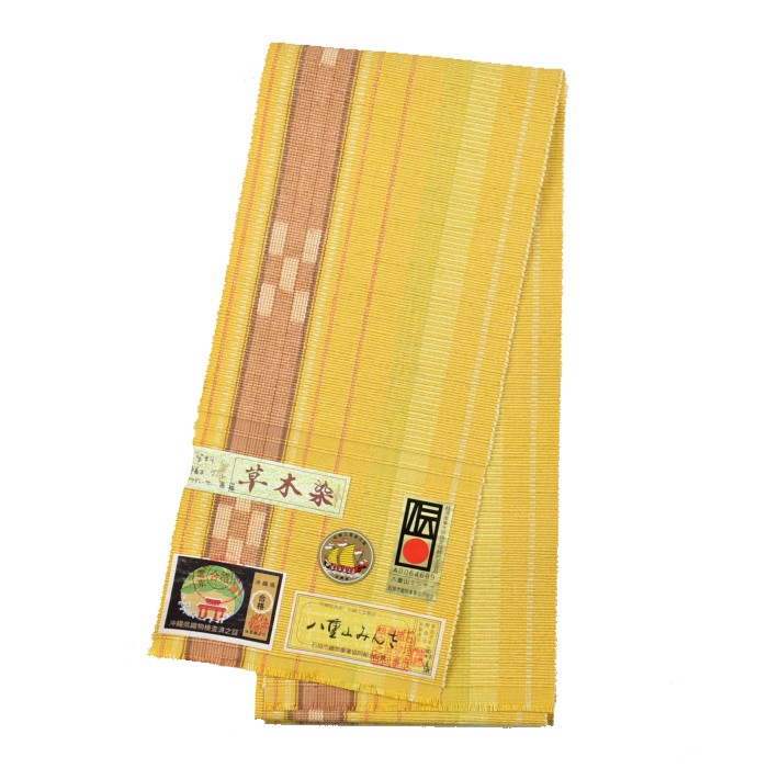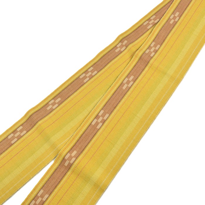 八重山ミンサー 半幅帯 黄色 草木染|石垣市織物事業協同組合