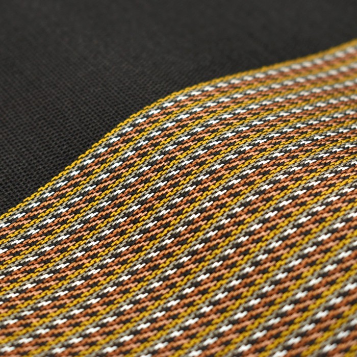 本場黄八丈 八寸名古屋帯 綾織 黒 多色縞