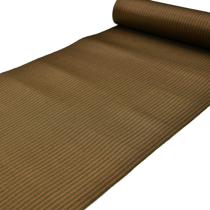 本場黄八丈 八寸名古屋帯 綾織 細縞 鶯茶色
