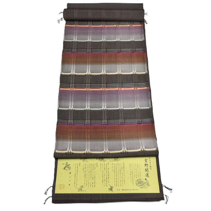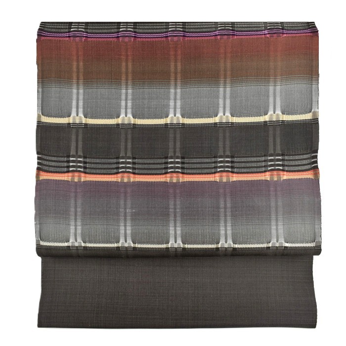 【お仕立て付き】吉野間道 九寸帯 お太鼓柄 ぼかし 茶色 グレー 紫 赤 | 藤山千春