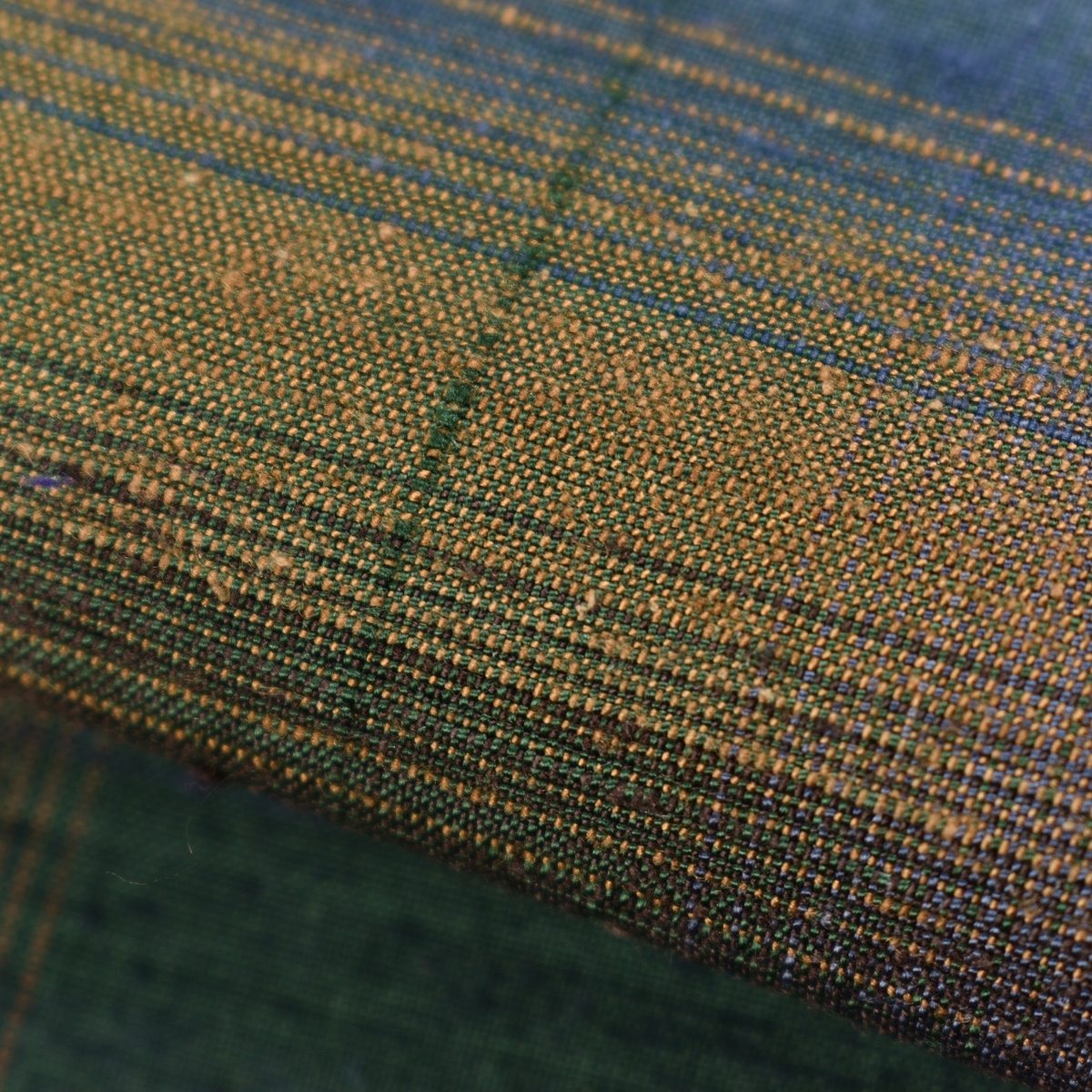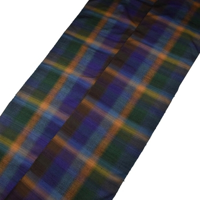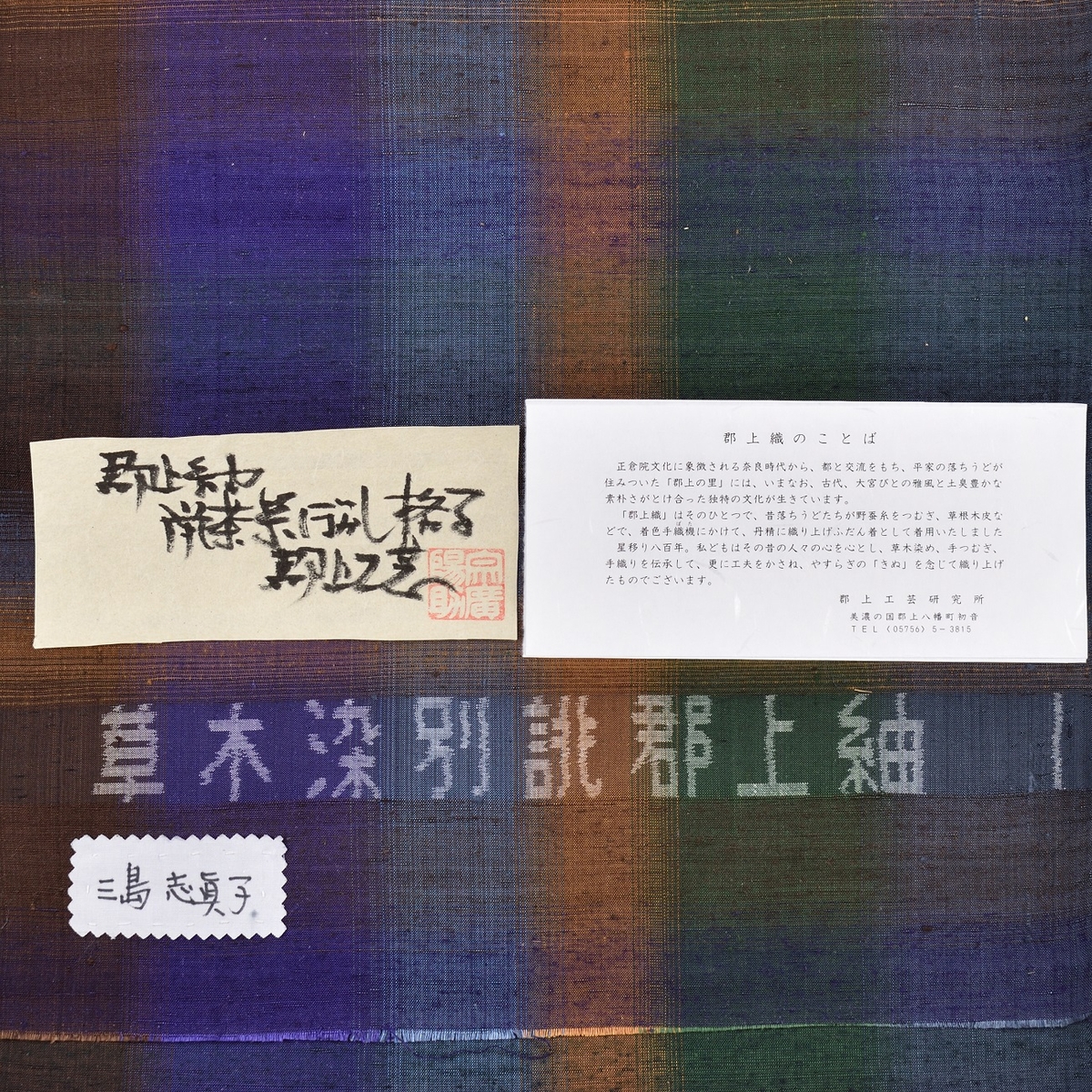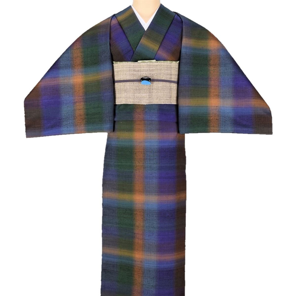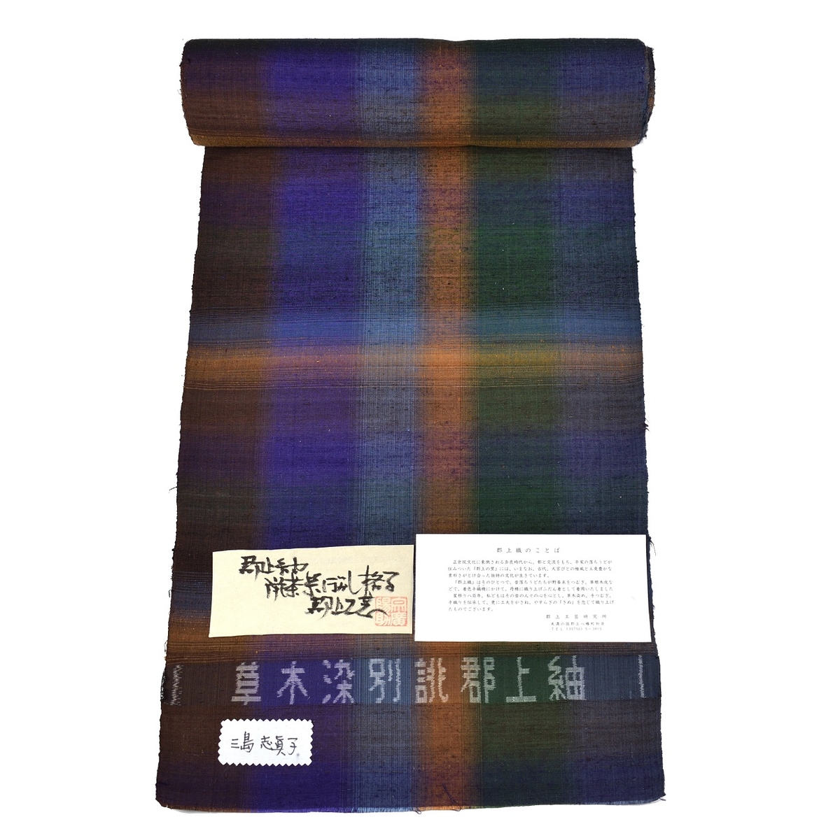 郡上紬 着尺 鼡茶紫ぼかし格子 緑 茶 藍
