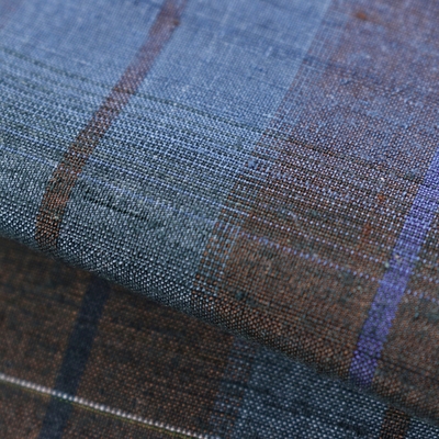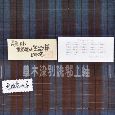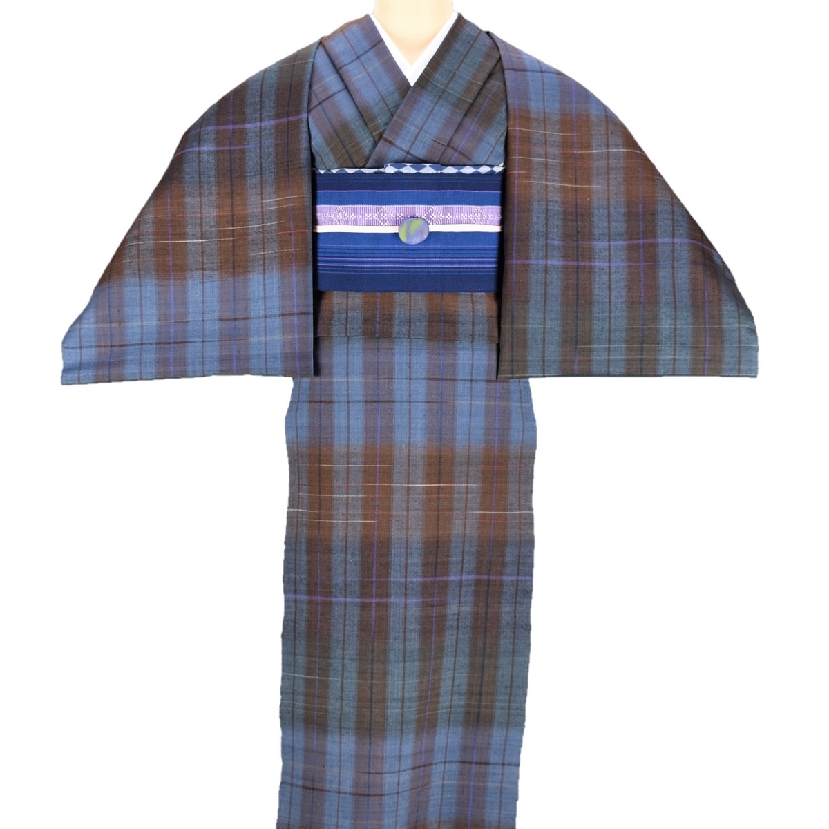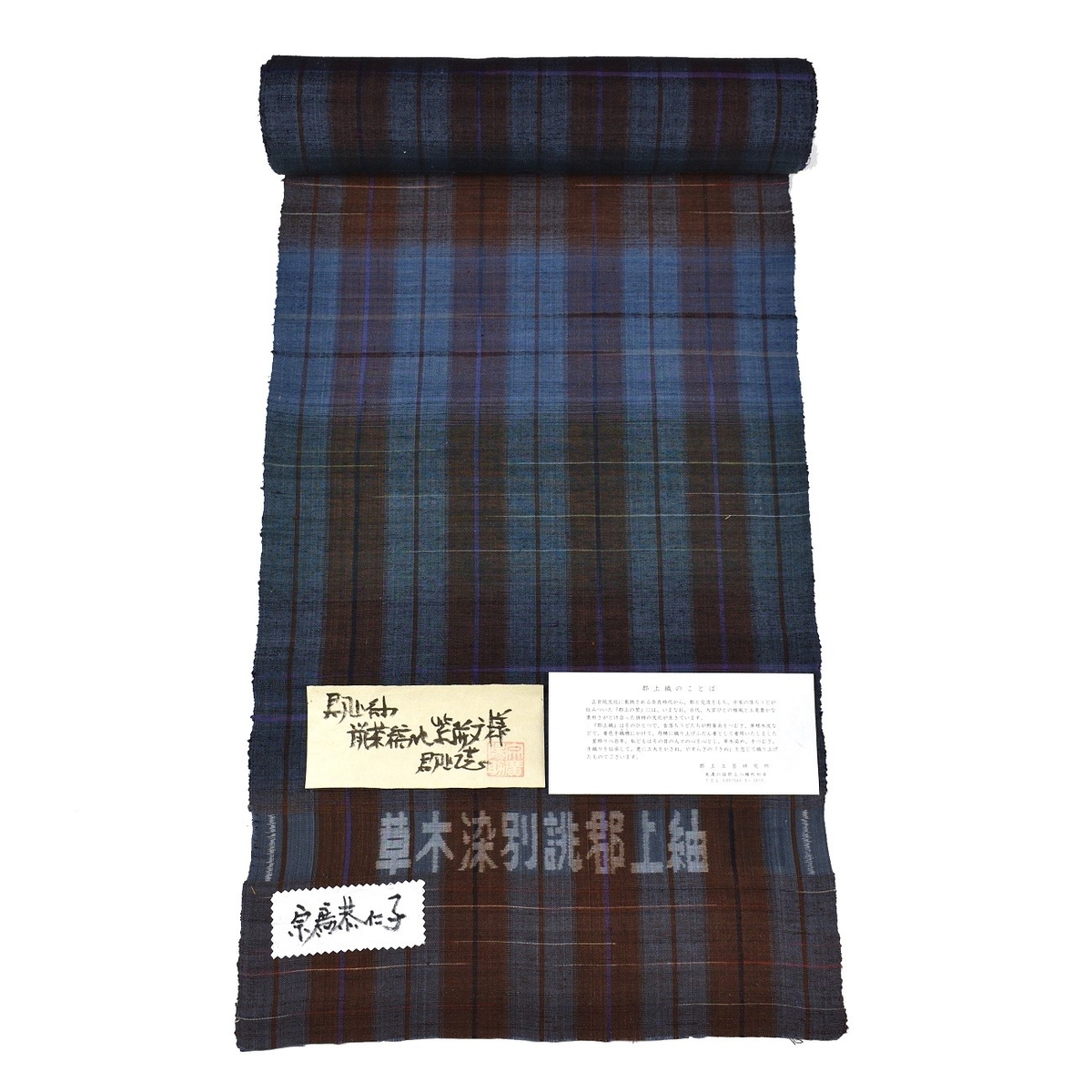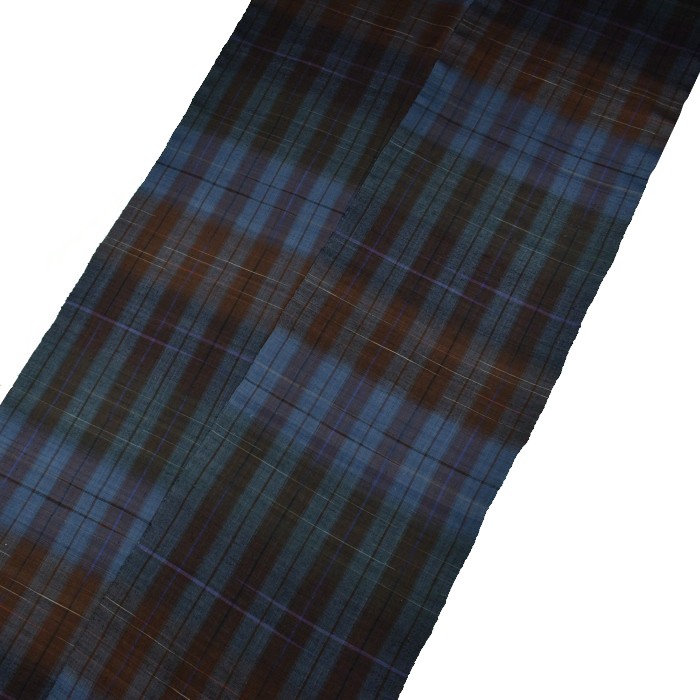 郡上紬 着尺 鼡茶縞地紫絣文様 藍 茶 紫
