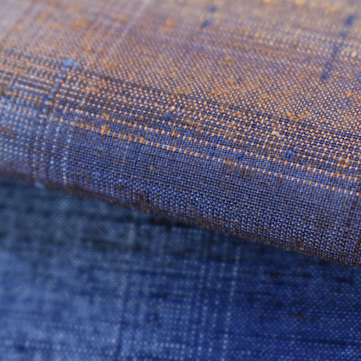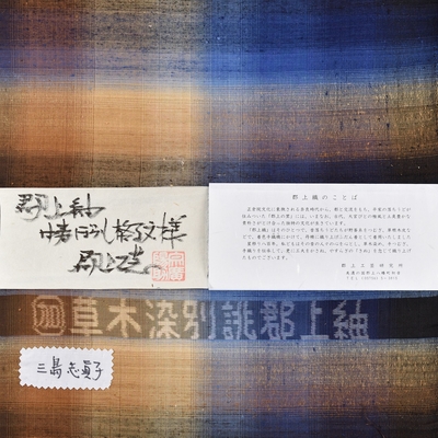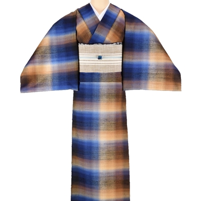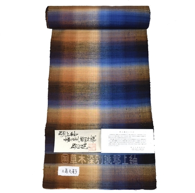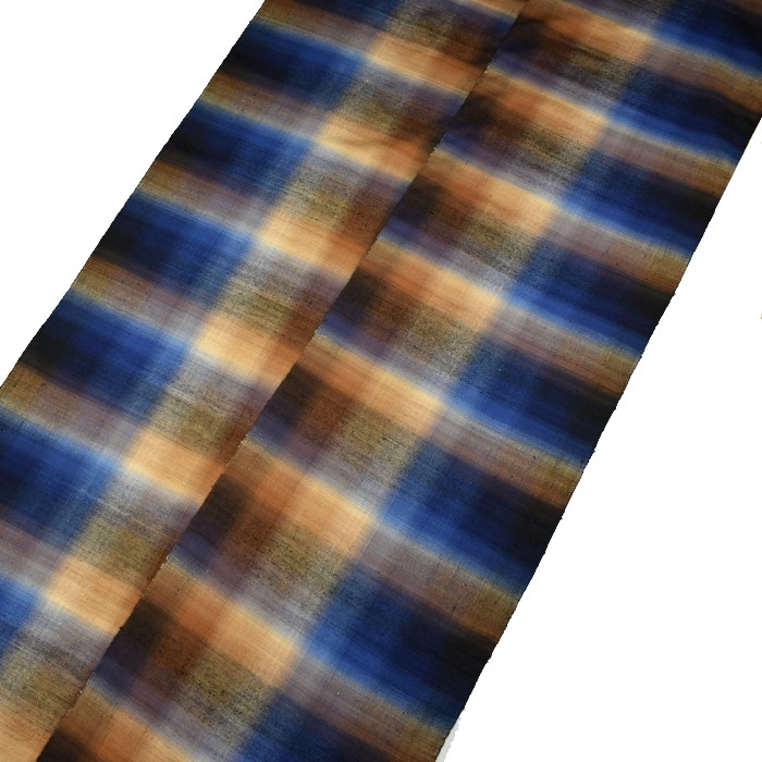 郡上紬 着尺 中青ぼかし格子文様 藍 茶 濃淡