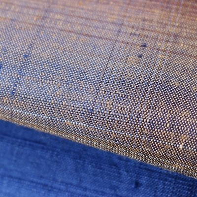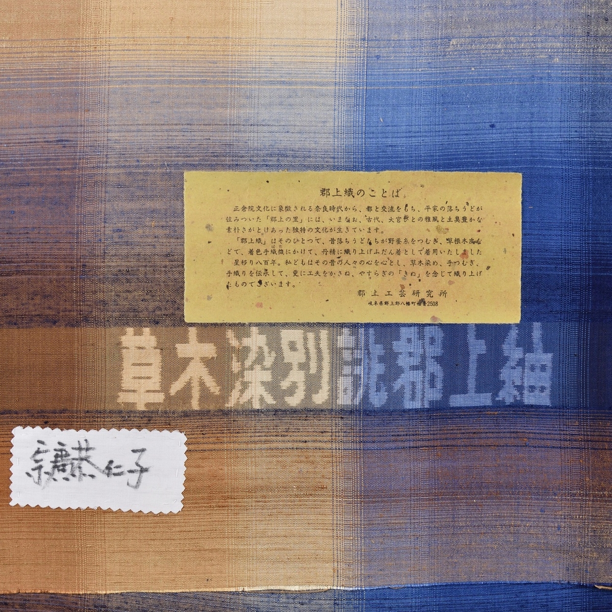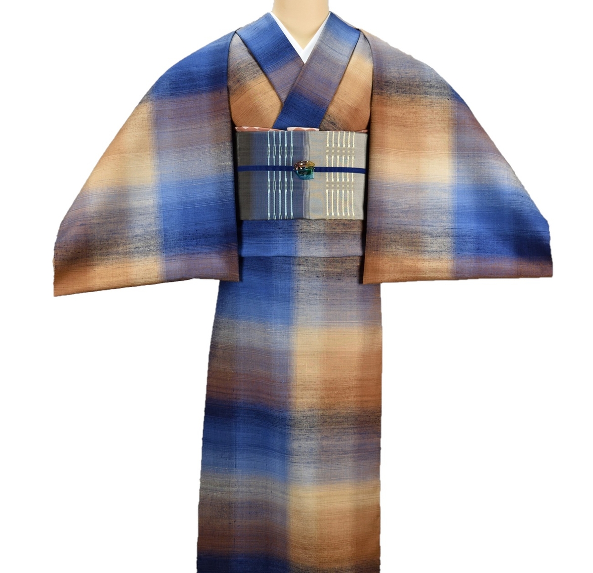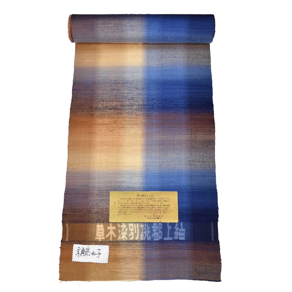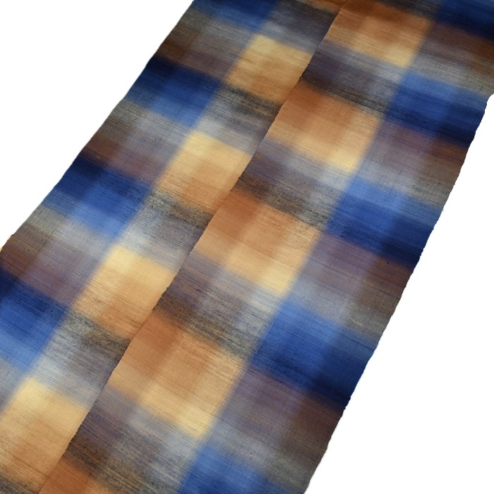 郡上紬 着尺 中青ぼかし格子文様 藍 茶