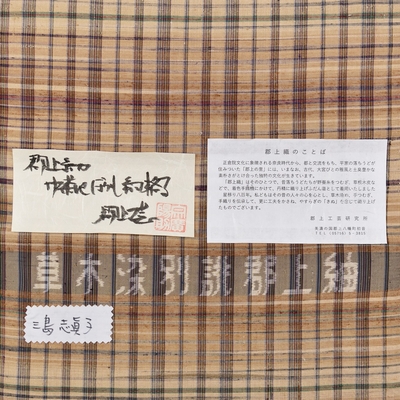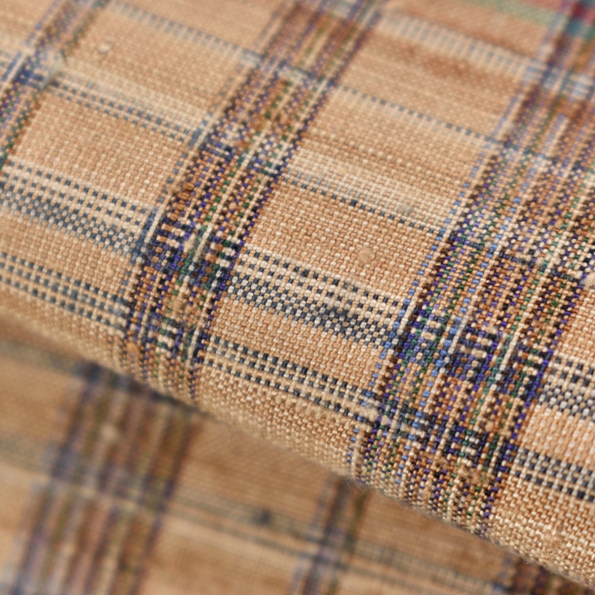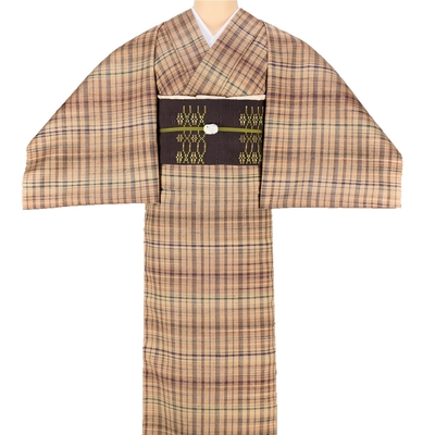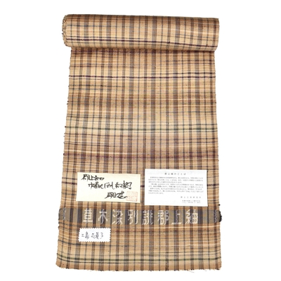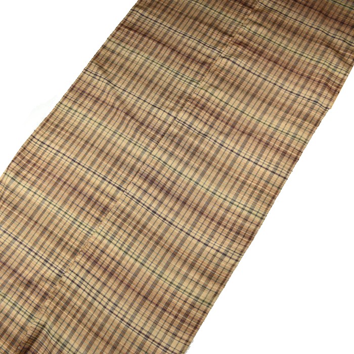 郡上紬 着尺 中茶地ぼかし細格子 ベージュ 茶 藍 緑
