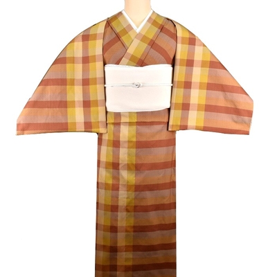 黄八丈 着尺 市松 赤 黄色 グラデーション