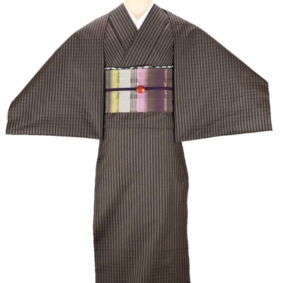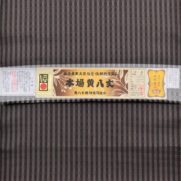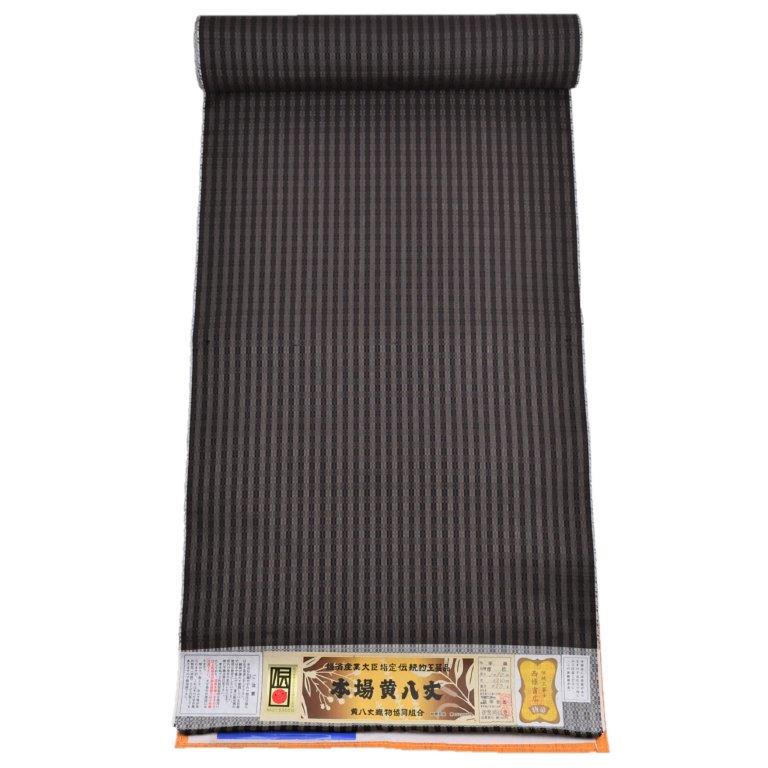 黄八丈 着尺 綾織 市松 縞 黒 グレー