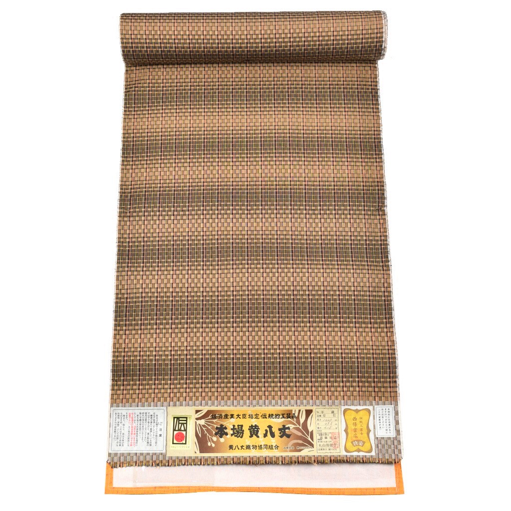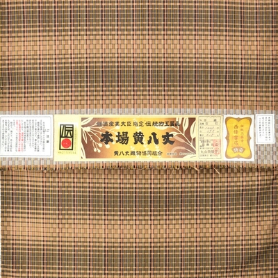 黄八丈 着尺 綾織 市松 茶 黒 黄