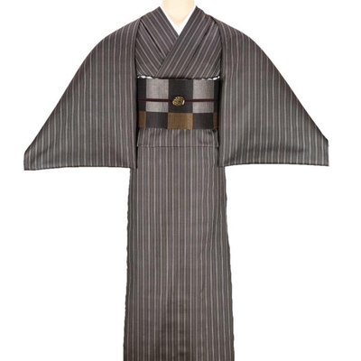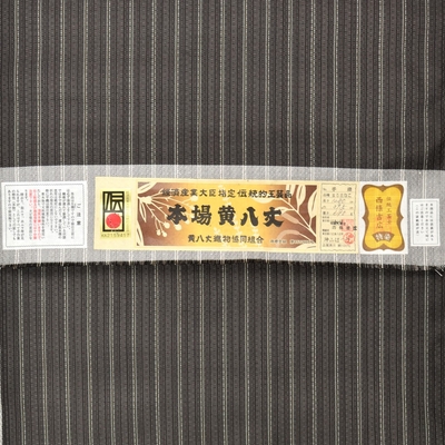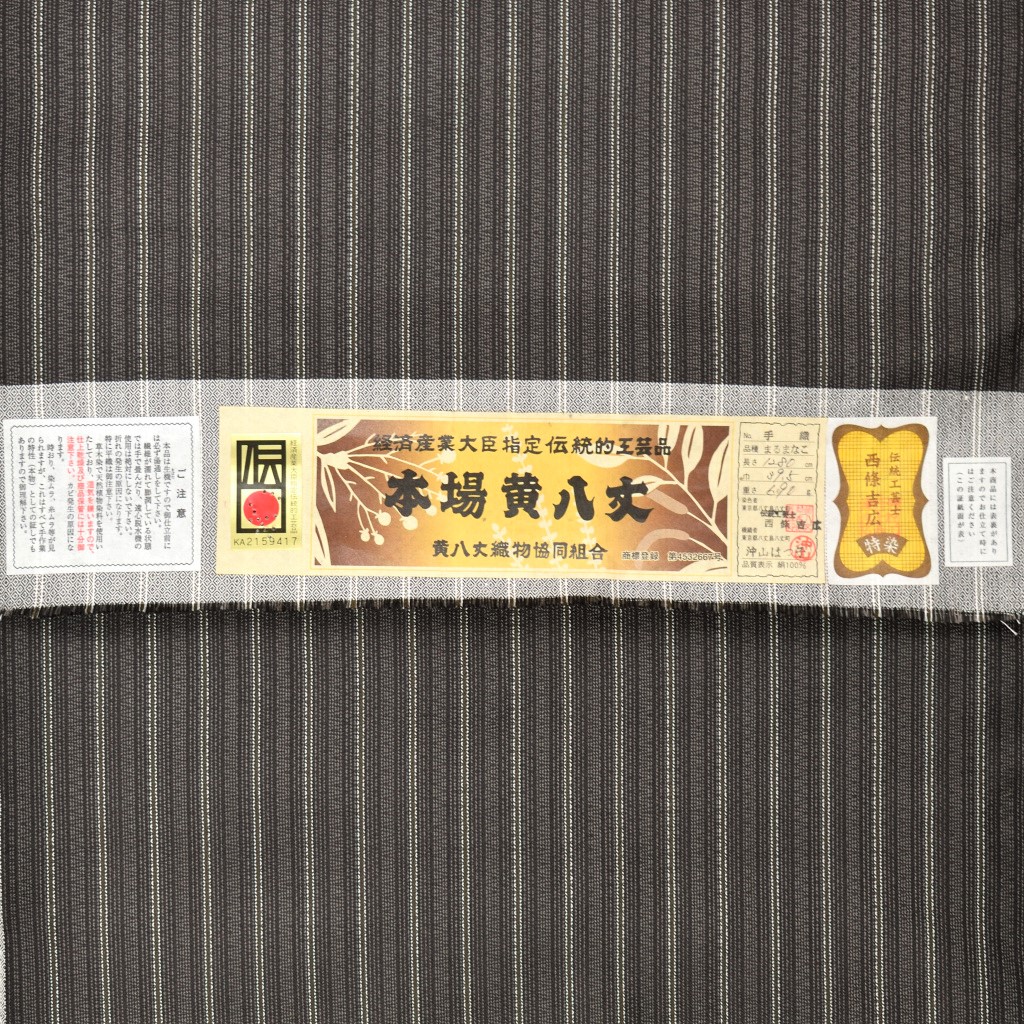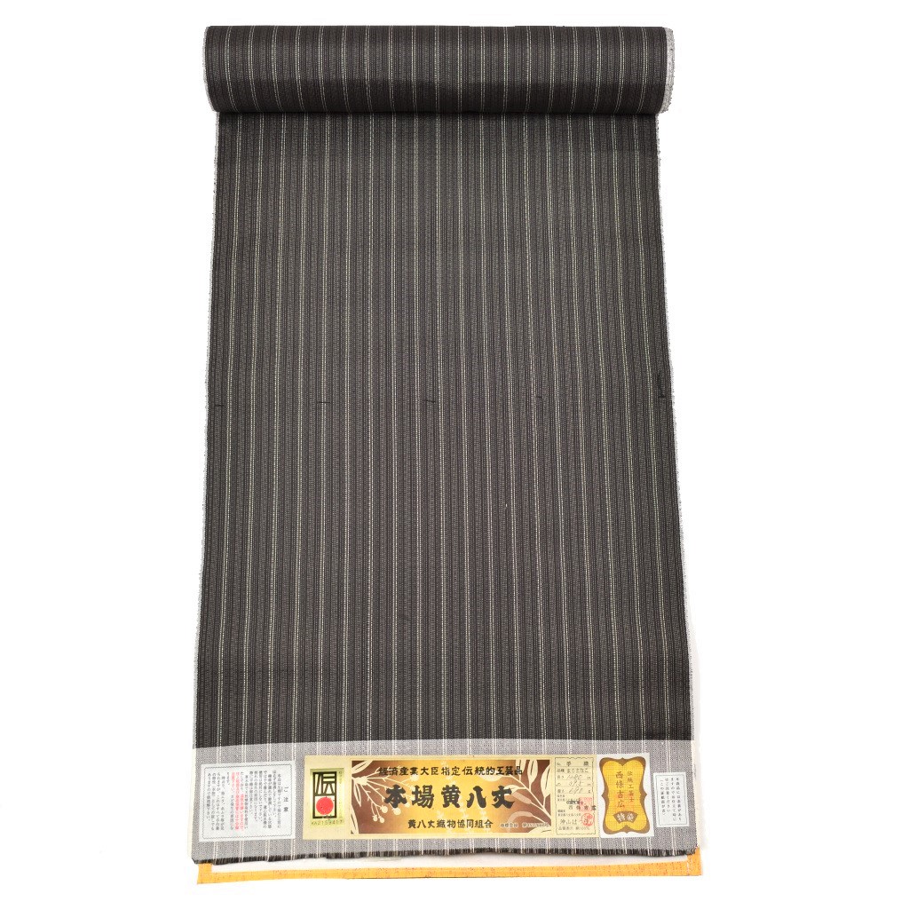 黄八丈 着尺 綾織 まるまなこ 黒八丈 縞柄 グレー 黄土色