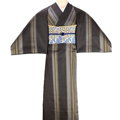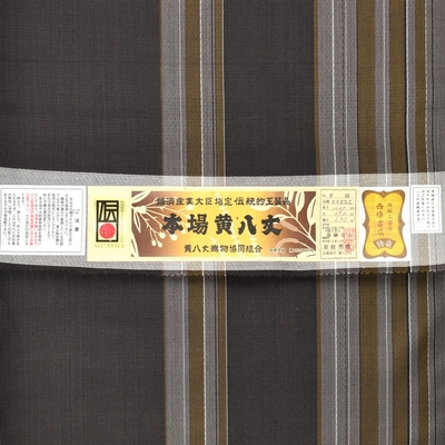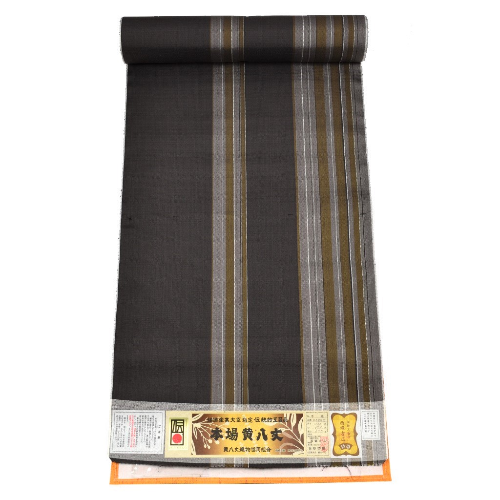 黄八丈 着尺 綾織 まるまなこ 黒八丈 縞柄 黒 グレー