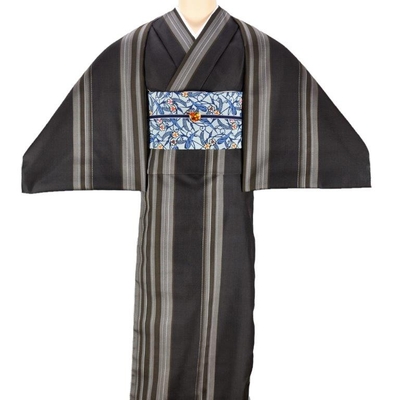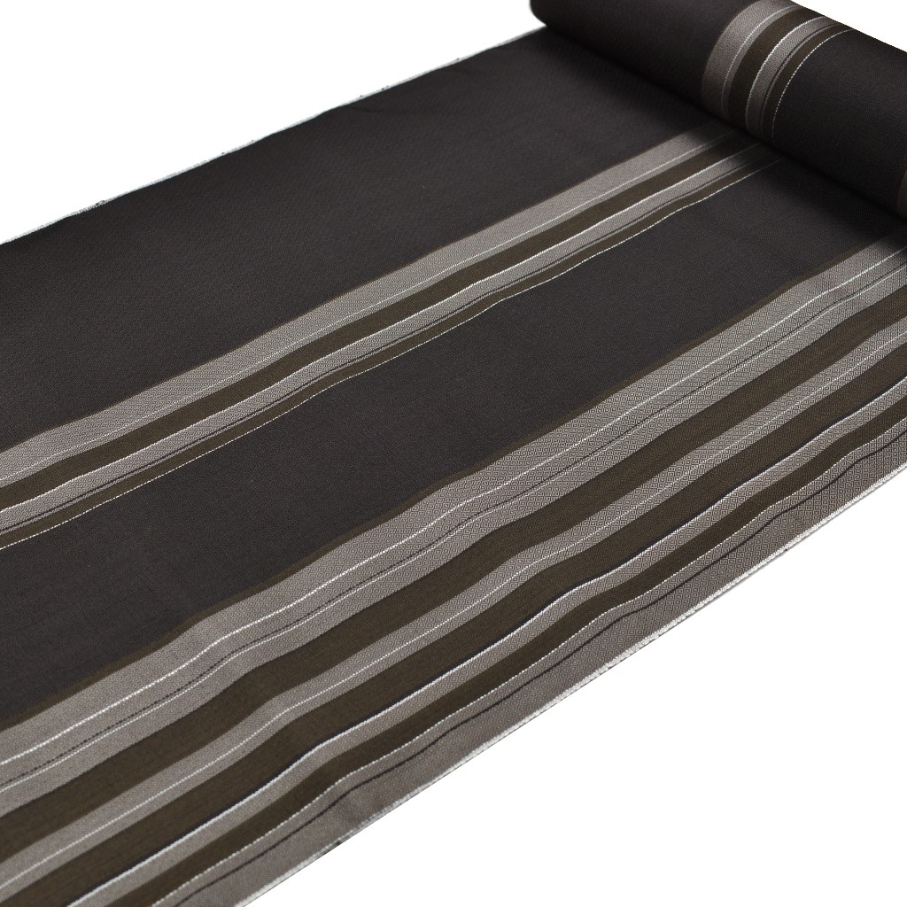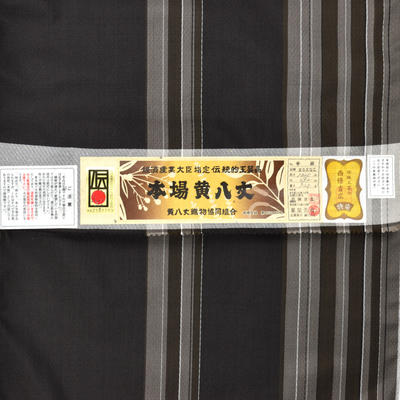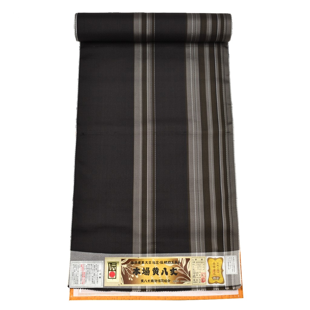 黄八丈 着尺 綾織 まるまなこ 黒八丈 縞柄 黒 グレー