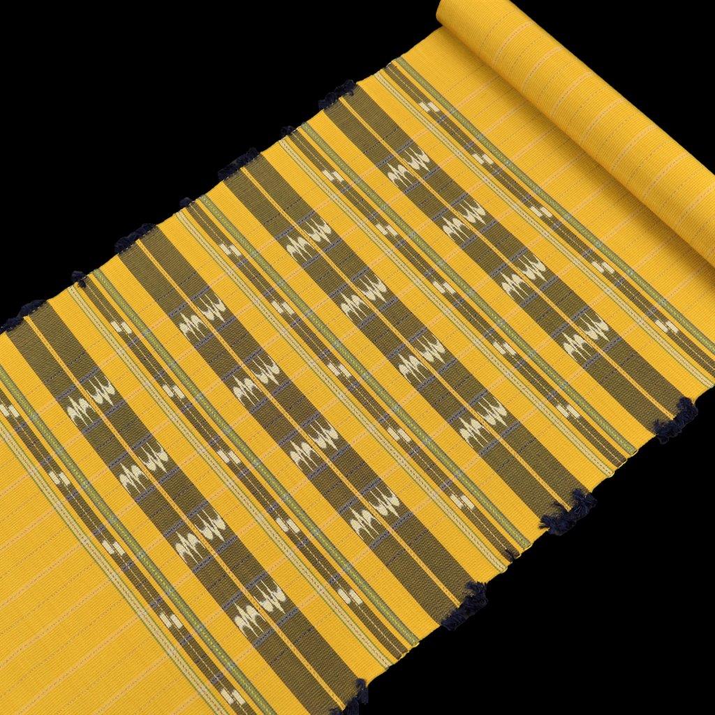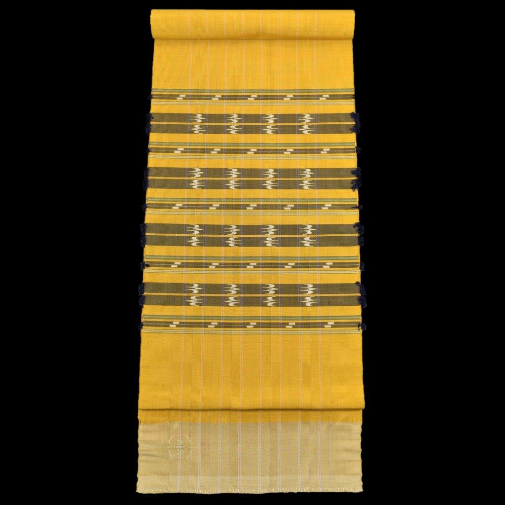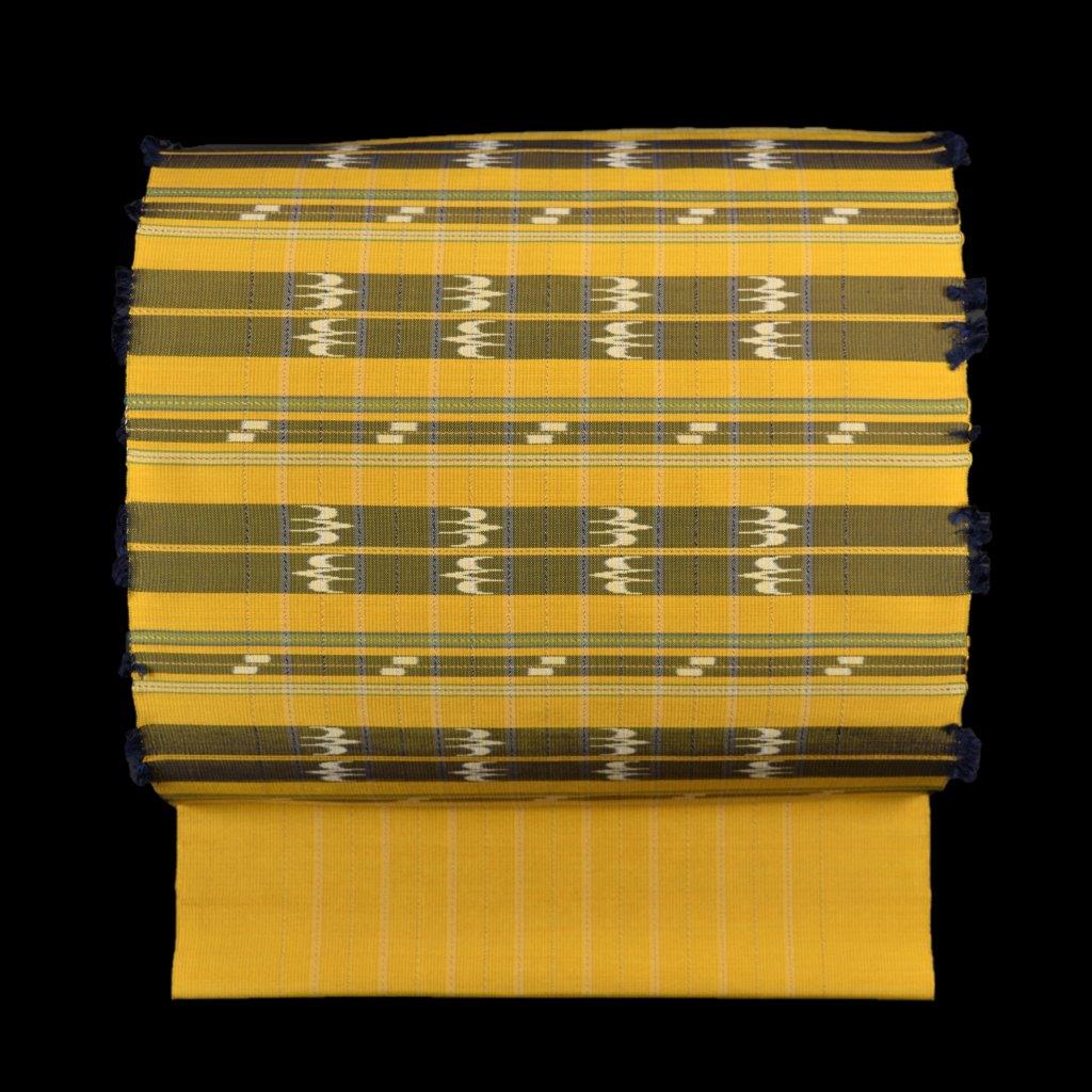首里絣 九寸帯 お太鼓柄 黄 茶 | 宮平初子 宮平織物工房 人間国宝