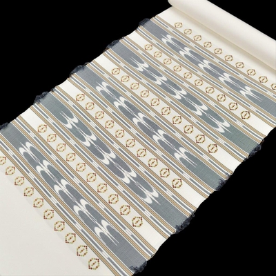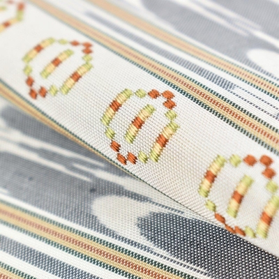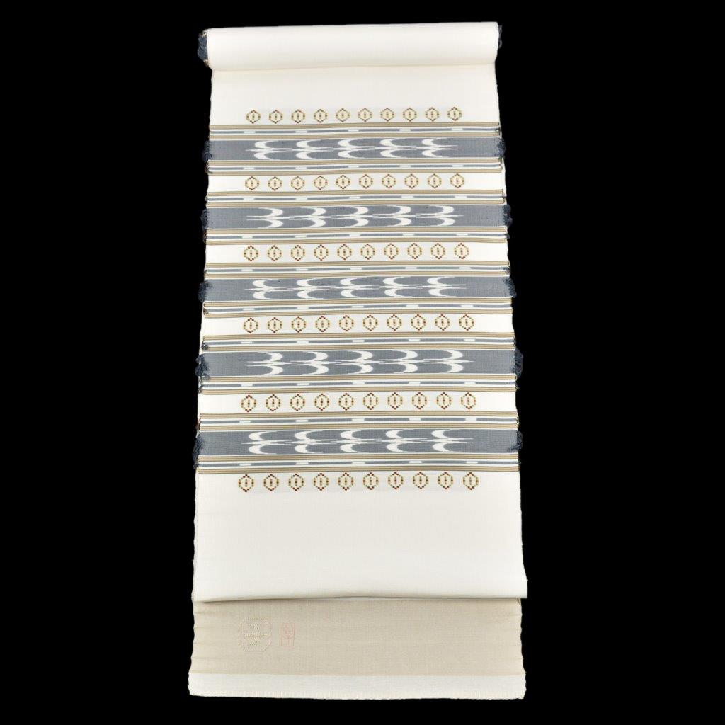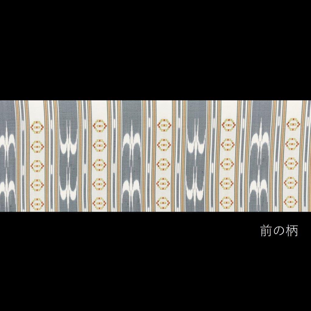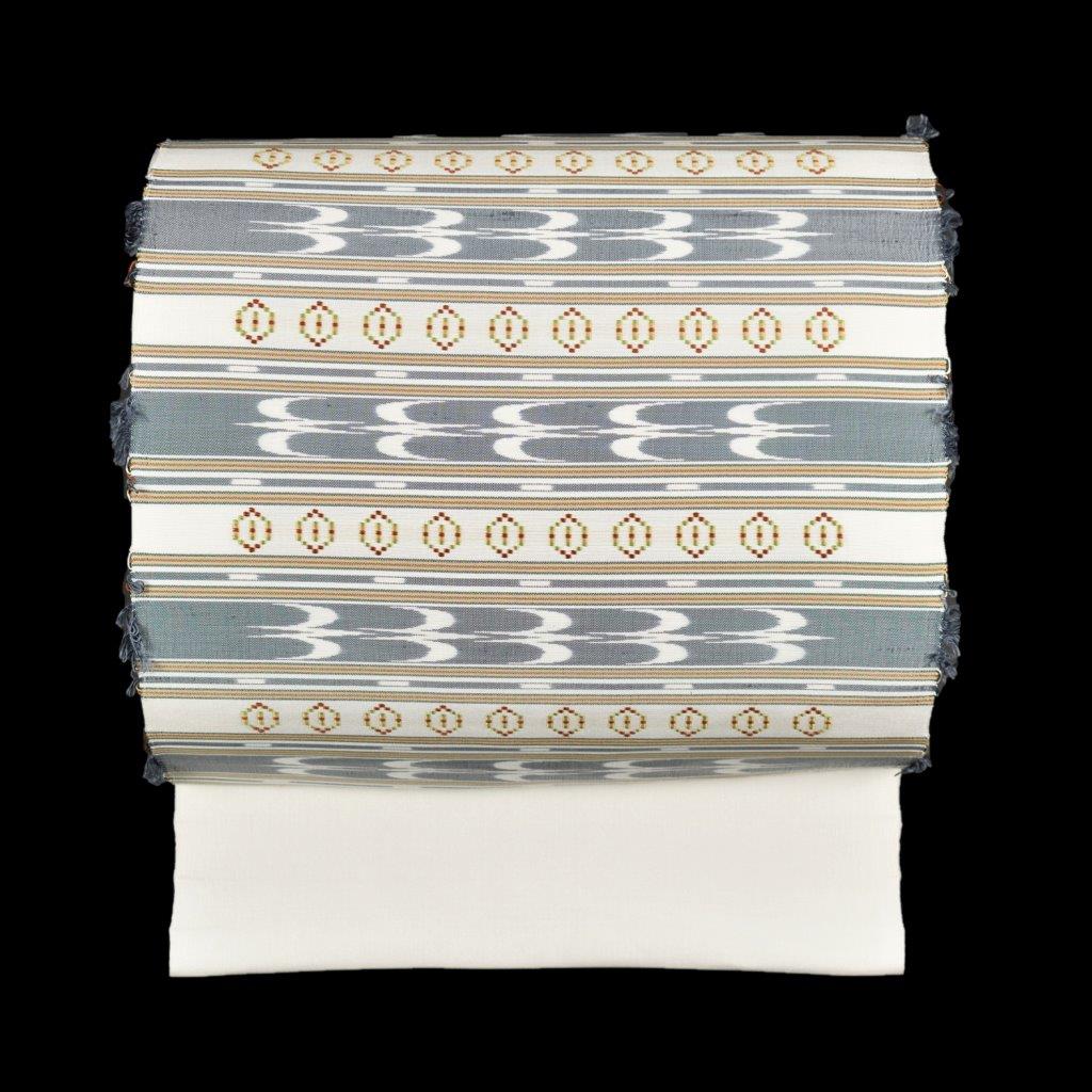 首里花織 首里絣 お太鼓柄 白 グレー オレンジ| 宮平初子 宮平織物工房 人間国宝