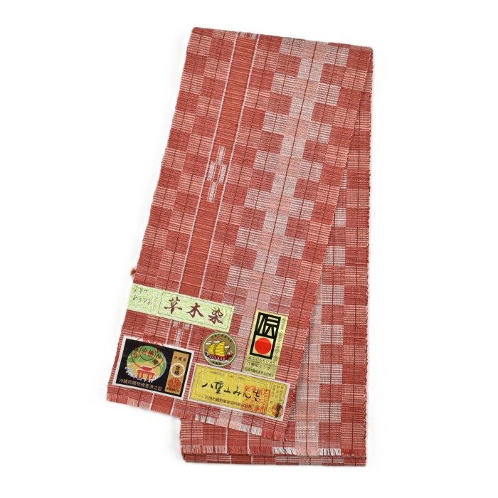 八重山ミンサー 半幅帯 赤 草木染 |石垣市織物事業協同組合