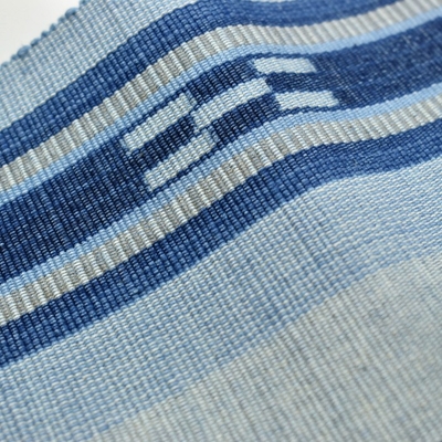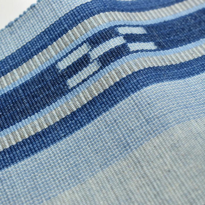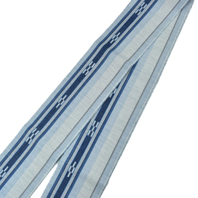 八重山ミンサー 半幅帯 水色 藍 草木染 |石垣市織物事業協同組合