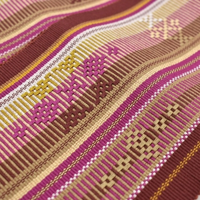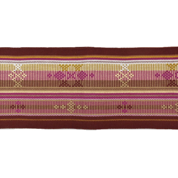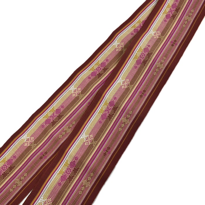 読谷山ミンサー 半幅帯 茶 黄 ピンク |読谷山花織事業協同組合