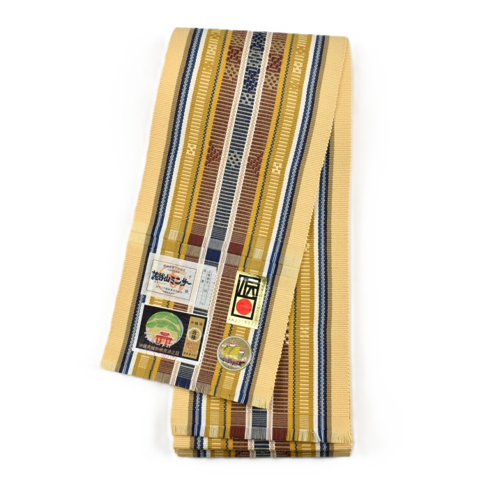 読谷山ミンサー 半幅帯 黄 藍 |読谷山花織事業協同組合