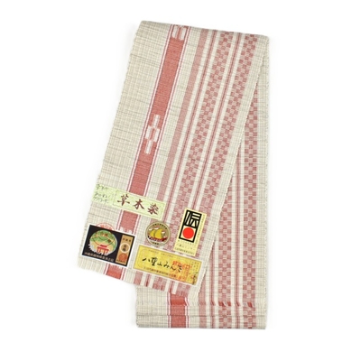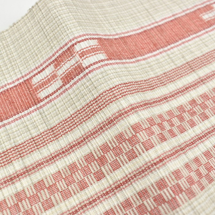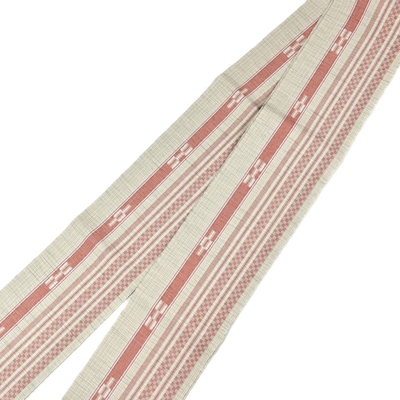 八重山ミンサー 半幅帯 生成り ピンク 草木染|石垣市織物事業協同組合