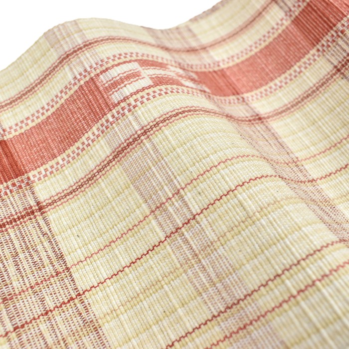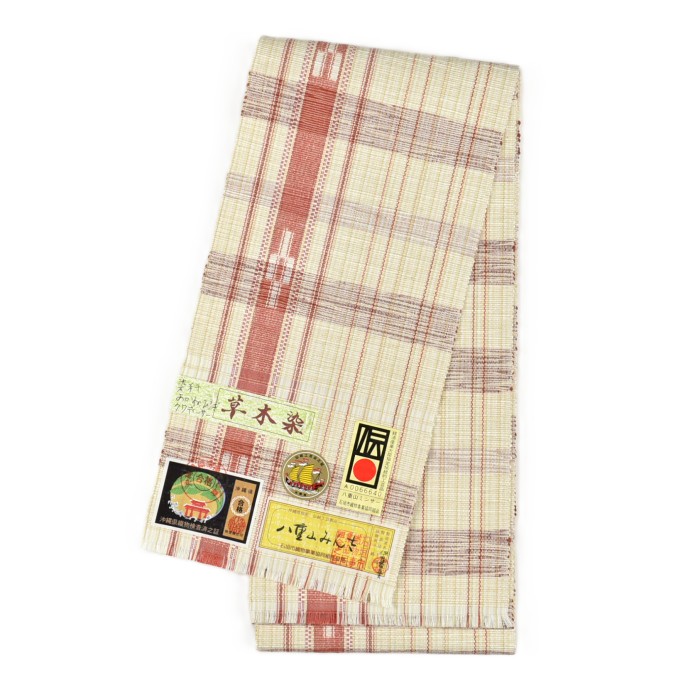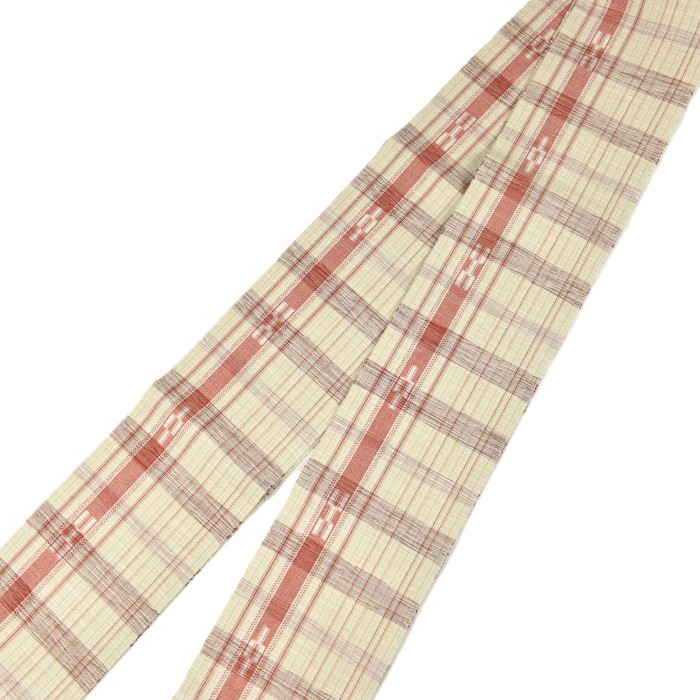 八重山ミンサー 半幅帯 生成り ピンク 格子 草木染|石垣市織物事業協同組合